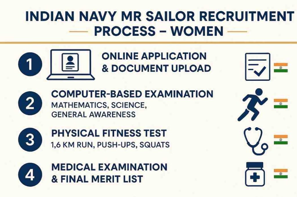 Look out for “Sailor Entry MR (Women)” notifications. Fill out the online form, upload your documents, and prepare for the exam.